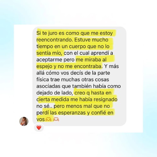 Reconectarás con esa persona que eras antes de tus síntomas. Esa persona activa, feliz, empoderada y segura.