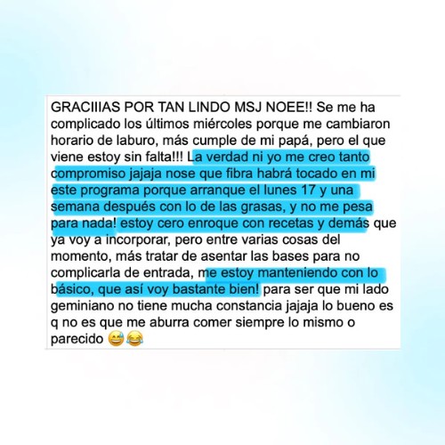 Un grupo de WhatsApp exclusivo para compartir con Noe y tus compañeros tus avances y todas las dudas que te surjan durante las 8 semanas.